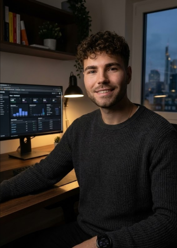 Ich bin Leon. Wirtschaftsingenieur (B.Eng.), Wirtschaftsinformatiker (M.Sc.), Tech-Enthusiast und derjenige, der dafür sorgt, dass Ihre Systeme endlich für Sie arbeiten, statt umgekehrt.